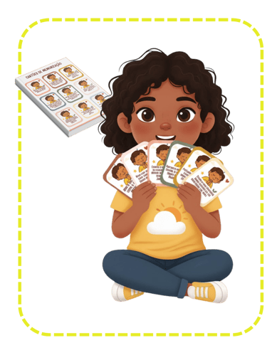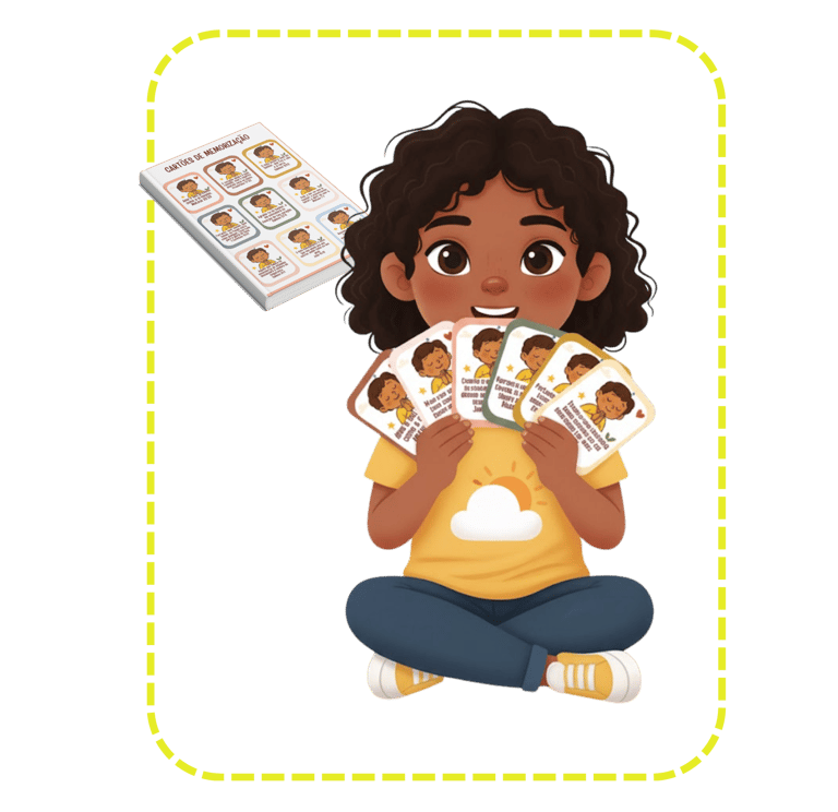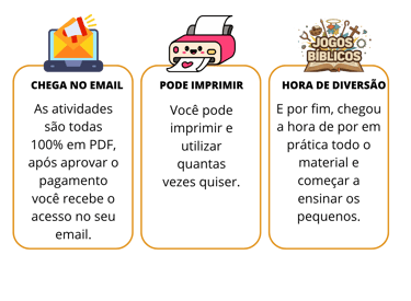 É um pacote em PDF com 20 atividades prontas (cartas, cartelas, jogos de tabuleiro simples, quizzes e mais), pensadas para mães ocupadas.
